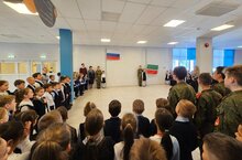 Учащимся 1-х классов помогали поднимать флаги учащиеся-кадеты 7К класса – Лотфуллина Ясмин и Юнусова Кира. В остальных классах церемония проводилась в учебных кабинетах совместно с классными руководителями и учителями-предметниками.