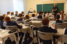 Проект «Читают ВСЕ!» реализуется в разных форматах. Например, сегодня в 4е класс пришла детская писательница, поэтесса, член Союза писателей РТ Рауза Хузахметова. Она познакомила ребят со своими книгами «Цвета радуги» и «Приключения Элис в швейном королевстве». Школьники с интересом послушали три «Лесных истории», увлечённо отвечали на вопросы по тексту сказок. Вместе с психологом Лялей Фатыховной Тибеевой писательница провела экспресс викторину по сказкам. Рауза Менгалимовна с удовольствием отметила, что дети очень активные и любознательные, понимающие смысл каждой истории - о взаимопомощи, о ценности трудолюбия и упорства.
