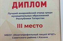 12 декабря в историческом парке "Россия - моя история" состоялся республиканский слёт ВВПОД "Юнармия", на котором кадетский класс - юнармейский отряд "Крепость" был награждён грамотой за почётное 3 место в республиканском конкурсе "Лучший юнармейский отряд среди муниципальных образований Республики Татарстан".
