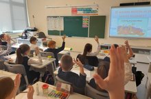 20 февраля учебная неделя по традиции началась с торжественной церемонии поднятия государственных флагов Российской Федерации и Республики Татарстан и исполнения гимнов. Почётным правом поднять государственные флаги были удостоены Звонарёв Михаил – учащийся 3И класса, отличник учёбы, победитель предметных олимпиад, творческих конкурсов и Шафикова Эмилия – учащаяся 3Е класса, отличница учёбы, активная участница предметных олимпиад. Также участниками церемонии стали обучающиеся параллели 3-х классов: 3А, 3Б, 3В, 3Г, 3Е, 3И и 6К классы совместно с классными руководителями.