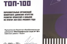 Наш Многопрофильный лицей № 187 вошел в рейтинг ТОП-100 образовательных организаций юниорского движения агентства развития профессий и навыков по итогам 2021-2022 учебного года. Это стало возможным благодаря участию и призовым местам лицеистов в региональном чемпионате WorldSkills. Благодарим ребят, участников чемпионата, а также педагогов и администрацию лицея за высокий результат!