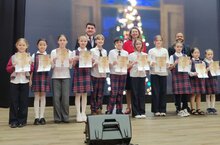 18 первоклассников получили дипломы за трудолюбие, старание и первые успехи в учебе. Всего более 50 учеников начальной школы были отмечены в различных номинациях. Половина из них показала отличные результаты в освоении английской программы.