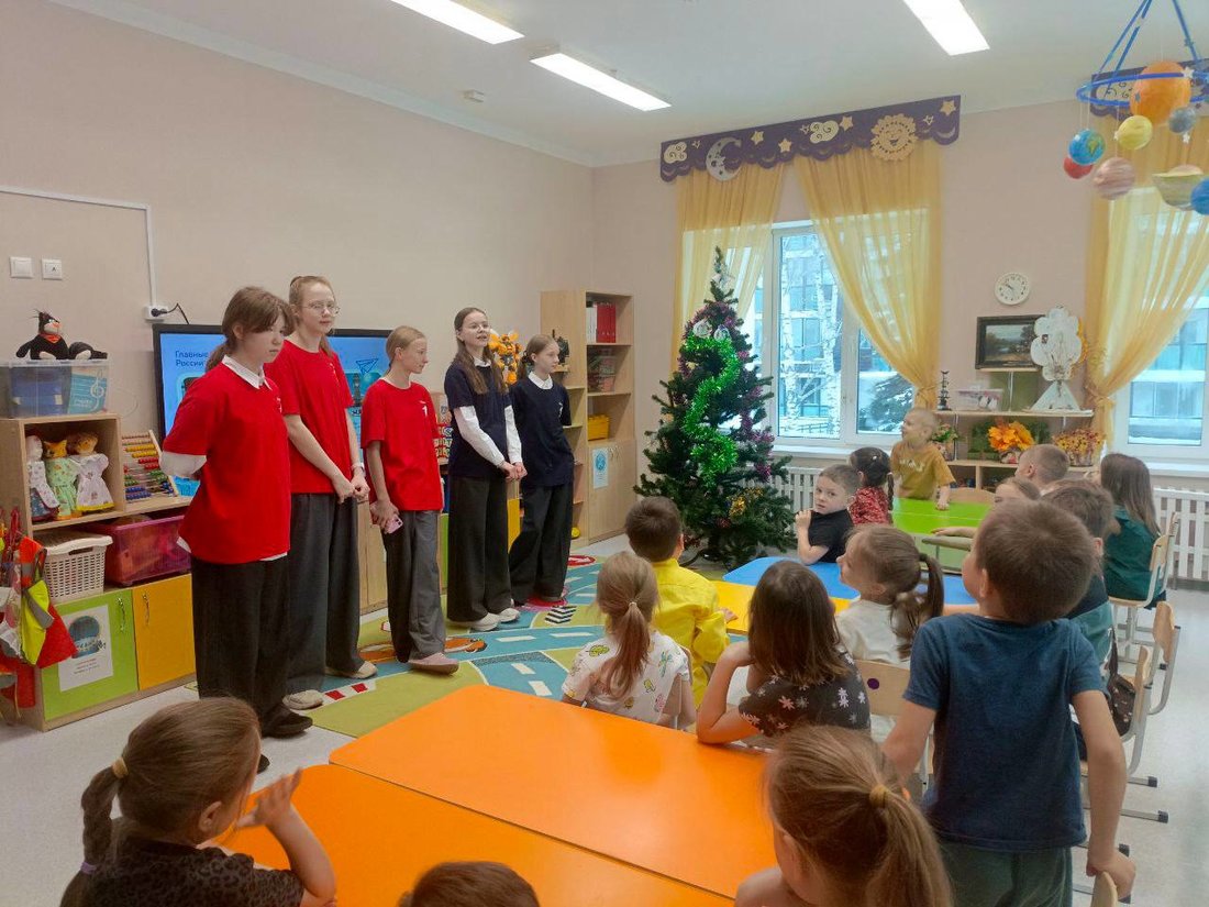Ребята поделились с малышами историей и традициями Нового года, а также узнали, как празднуют этот волшебный праздник в семьях дошколят.