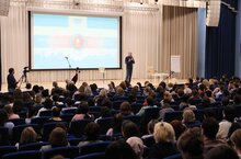 Спикером выступил лауреат премии Правительства России в сфере образования и культуры, автор и ведущий интеллектуального реалити-шоу «Полиглот», автор книг и учебников-тренажеров для быстрого изучения иностранных языков Дмитрий Петров. -