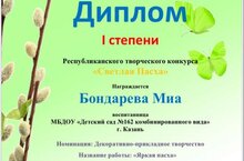 Поздравляем нашу воспитанницу Бондареву Мию с победой в Республиканском конкурсе "Светлая пасха" в номинации: Декоративно-прикладное творчество☀️????????????