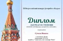 Наш талантливый ученик Сучков Никита успешно выступил во Всероссийском конкурсе фоторабот «Кадры» и заслуженно получил звание Лауреата II степени! Его творчество высоко оценили эксперты конкурса, отметив оригинальность идей и техническое совершенство работ. Мы уверены, впереди у Никиты много ярких кадров и впечатляющих побед! Желаем нашему фотографу вдохновения, творческих успехов и новых высот!