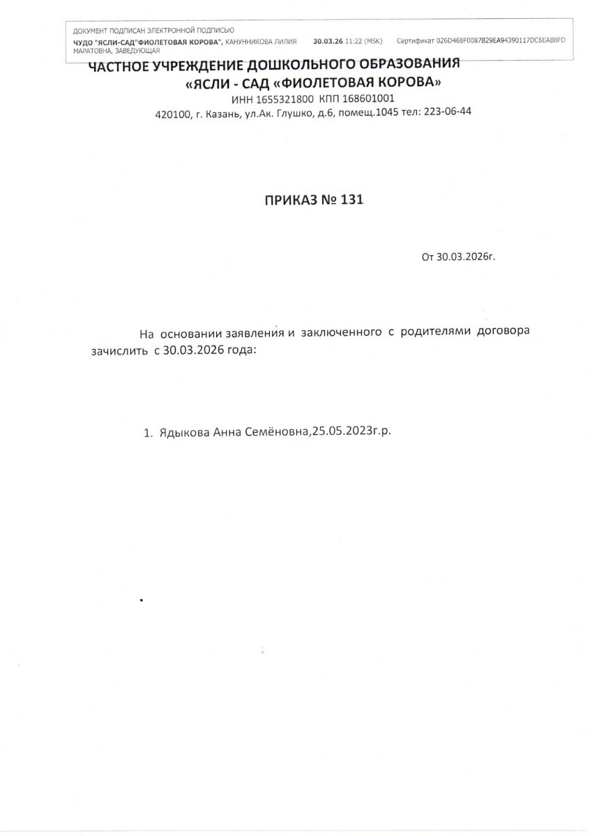 | Короткое название: | ЧУДО "ЯСЛИ-САД"ФИОЛЕТОВАЯ КОРОВА" |