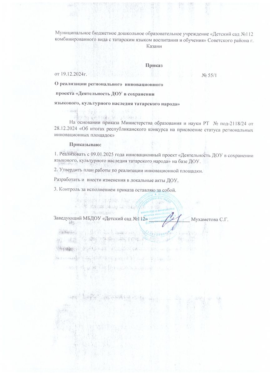 приказ по инновационной площадке 2025г
