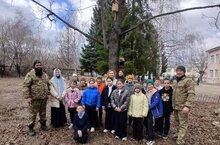 4В сыйныф укучылары, «Шәһәр яны урманчылыгы» хезмәткәре Исламов Айдар Римович белән берлектә, мәктәпнең яшелчә бакчасында яшь алмагачлар утырттылар. Айдар Римович укучыларга агач утырту һәм агач үсеп китсен өчен ничек тәрбияләргә кирәклеген аңлатты.