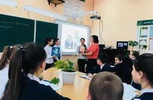 В минувший понедельник нас посетил заместитель председателя регионального отделения Русского географического общества в РТ, Вице-президент Федерации подводного спорта РТ А.Ю. Агарков. Он презентовал республиканский фотопроект "Моя малая Родина", а так же рассказал о предстоящих акциях РГО. В ответ на это учащиеся 5 "Б" класса доложили о проделанной работе в рамках проекта "Лаборатория юного горожанина - Geourbis"