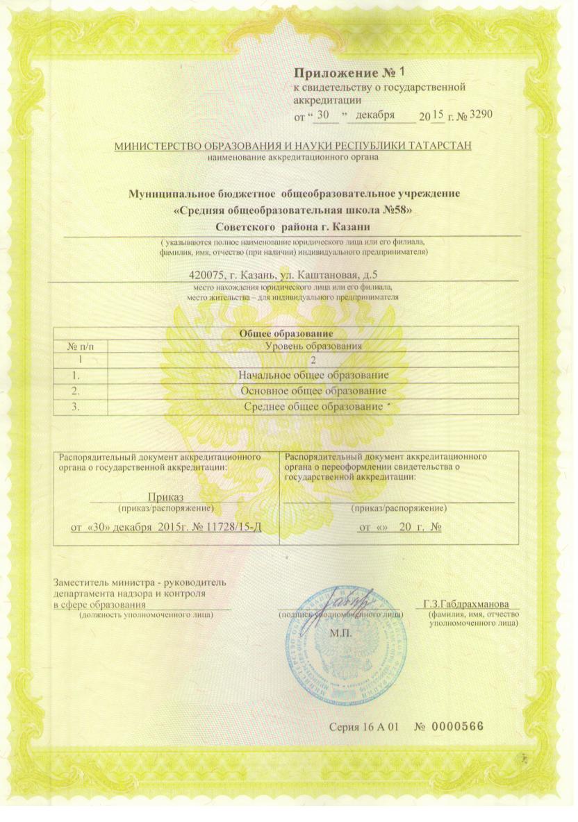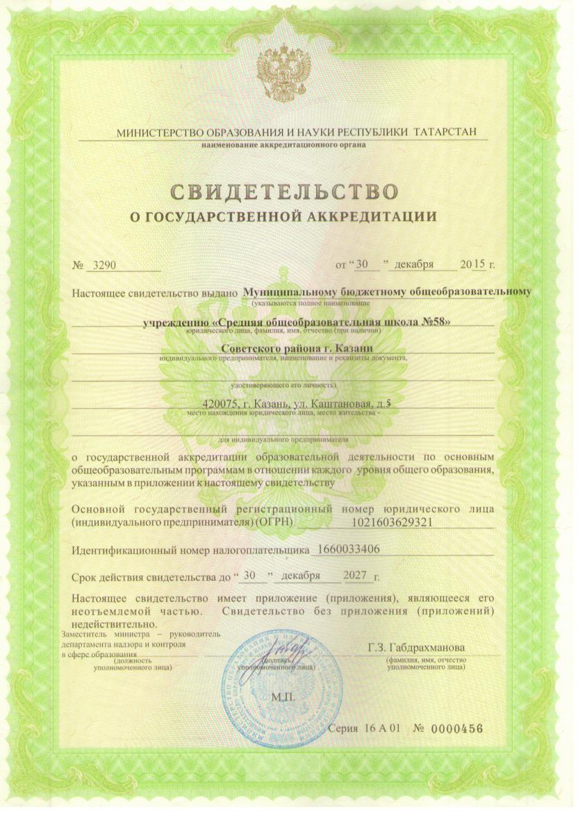 МБОУ «Средняя общеобразовательная школа №58» Советского района г. Казани (реорганизация)