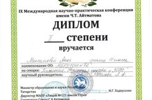 - Саитова Алия, ученица 9 класса, призёр (учитель Дылевская А.В.);
