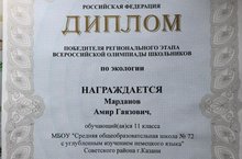 Марданов Амир (11 класс) стал победителем регионального этапа Всероссийской олимпиады школьников по экологии. Это по-настоящему серьезное достижение. Поздравляем!