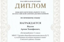 Второе место в секции "Немецкий язык" - у Блутштейн Алисы (11 класс).