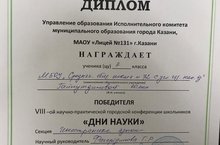 VIII-ой научно-практической городской конференции школьников "Дни Науки", прошедшей в Лицее N131.