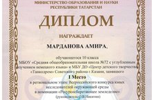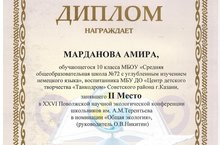 Марданов Амир, ученик 10Б класса, – призёр XXVI Поволжской научной практической конференции школьников им.А.М.Терентьева. 22.02.2020