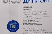 31 октября 2019 года в КФУ состоялась III Всероссийская научная конференция имени Льва Толстого. Поздравляем Закирова Арсена, ученика 11а класса, получившего диплом 1 степени за исследовательскую работу, представленную на секции «Иностранные языки» (научный руководитель Новикова К.А.), и Бусиль Олесю, ученицу 11б класса, получившую диплом 2 степени за исследовательскую работу, представленную на секции «Психология» (научный руководитель Султанова М.Р.) Желаем ребятам дальнейших успехов!