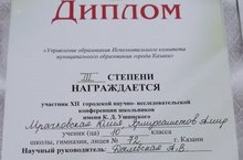 23 ноября в гимназия №37 состоялась XII городская научно-исследовательская конференция школьников имени К.Д.Ушинского. Поздравляем Мрачковскую Юлию, ученицу 10Б класса, получившую диплом 3 степени на секции иностранных языков (учитель Дылевская А.В.).