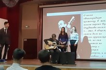 Сегодня в нашей школе прошла городская акция «Литературные дворики» по теме «Писатели-юбиляры 2019», на которой ученики 11-х классов выступили с композициями Булата Окуджавы, одного из наиболее известных представителей в жанре авторской песни. Знаменитые произведения до сих пор звучат на концертах и с экранов телевизоров.