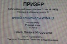 Поздравляем Тома Диану, ученицу 3 класса, получившую диплом призёра на очной олимпиаде WINKID по русскому языку. Научный руководитель – Семёнова С.В. Желаем новых творческих побед!