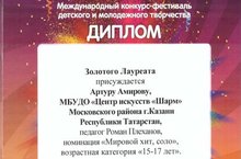 Поздравляем Амирова Артура, ученика 11 класса, получившего диплом Золотого Лауреата на международном конкурсе-фестивале детского и молодёжного творчества «Весенние выкрутасы-2018» в номинациях «Мировой хит, соло» и «Эстрадный вокал, соло»!
