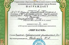 9 марта 2016 года в Казанской Ратуше состоялась церемония награждения победителей и призеров городского конкурса профессионального мастерства «Учитель года города Казани – 2016». В этом году городской конкурс проходил по 11 номинациям. Педагоги Советского района участвовали во всех номинациях. Педагог-психолог Султанова Мадина Равилевна представила нашу школу в данном конкурсе очень достойно и заняла 3 место. Поздравляем с заслуженной победой и желаем удачи на республиканском этапе конкурса "Учитель года - 2016"!