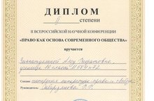 Зиннатуллина Алсу, ученица 10 класса, заняла 2 место на II Всероссийской научной конференции "Право как основа современного общества"! 18.03.2016
