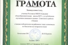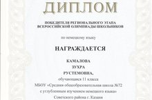 Камалова Зухра - победитель регионального этапа всероссийской олимпиады школьников по немецкому языку. 09.02.2015