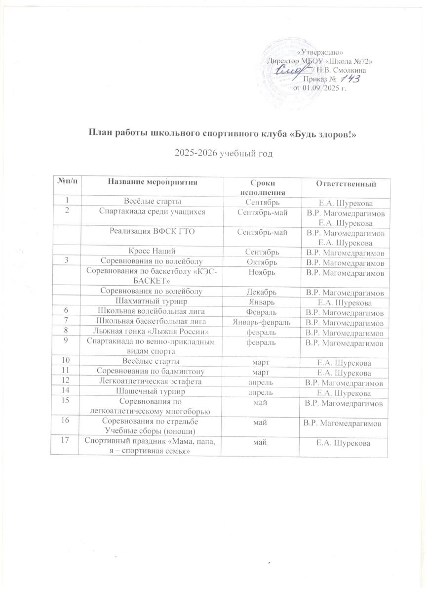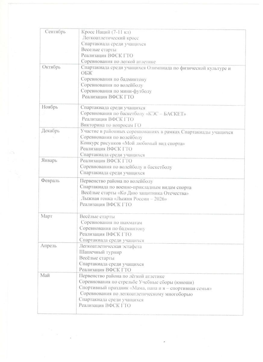 План спортивно-массовых,социально значимых мероприятий 2025-2026