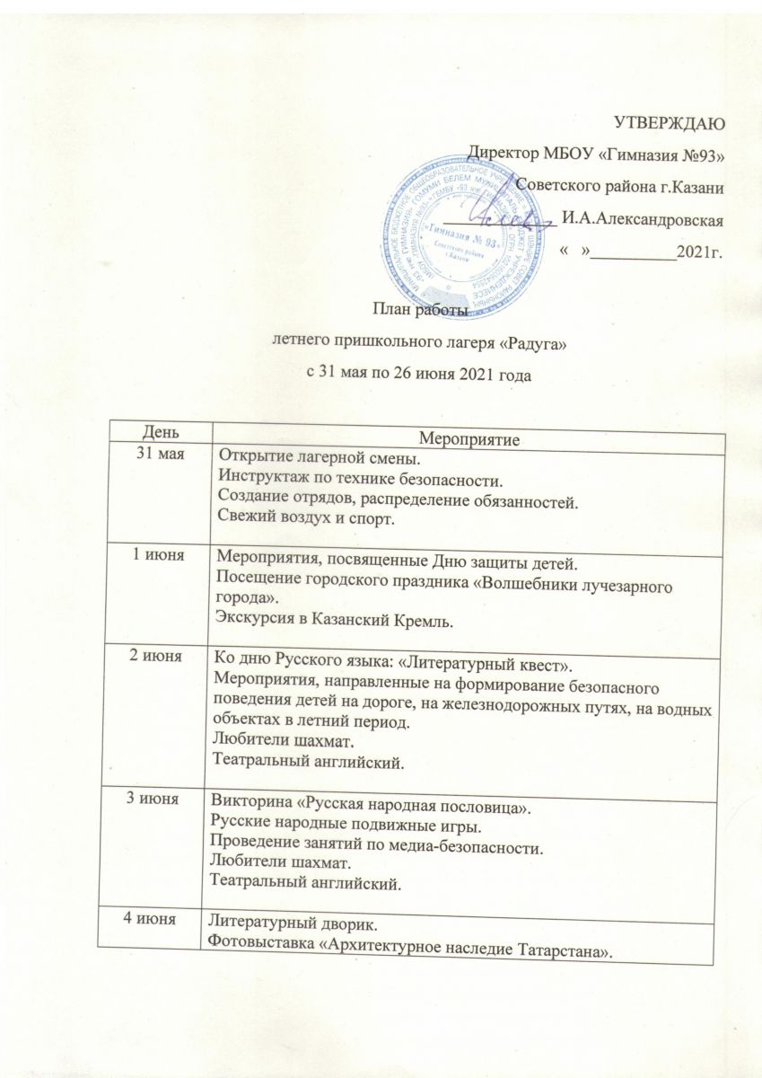 Начальник лагеря Прокофьев К.Ю. План работы лагеря (ссылка 1 ,2,3 )