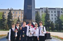 Юнармейцы гимназии 93 имени А.С.Пушкина приняли участие в торжественной церемонии возложения цветов к памятнику воинам -танкистам.