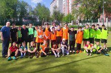 Команда спортивного клуба " Притяжение" приняла участие в соревнованиях по футболу " Кожаный мяч" среди команд общеобразовательных учреждений Советского района.