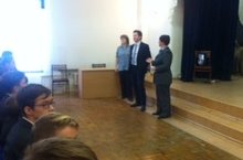 Сегодня в гимназии собрались жители микрорайона. Присутсвующие получили подарки от Совета Ветеранов и депутата депутата Казанской городской Думы, декана юридического факультета Казанского (Приволжского) Федерального университета.Бакулиной Лилии Талгатовны. Концертные номера пдоготовили педагоги ДМШ №23 и поэтический театр "Диалог" ,руководителем которого является поэтесса Ольга Левадная.