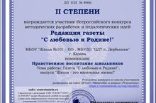 Поздравляем редакцию школьной газеты "С любовью к Родине", призёра Всероссийского конкурса школьной прессы. Руководитель редакции Поликарпова Н.Г., учитель русского языка и литературы.