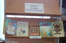 Также для детей был проведен обзор книг с книжной выставки « Добрые истории Евгения Пермяка», подготовленной в библиотеке к юбилею Евгения Андреевича Пермяка.