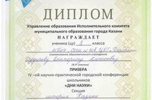 Поздравляем Дудичеву Екатерину, ученицу 8б класса, Поликарпову Н.Г., Хузиахметову Л.Н., учителей русского языка и литературы, руководителей научной работы, с победой на IV научно-практической городской конференции школьников «Дни науки» в секции История Казани».