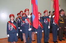 К 71-ой годовщине Победы советского народа в Великой Отечественной войне в Советском районе прошёл конкурс-смотр знамённых групп школ. Десять школ представили работу своих знамённых групп. Знамённую группу нашей школы представляли ученики 8к класса: Калимуллин Гаяз, Ипатов Никита, Кандалин Михаил, Шарипов Данил, Шумская Алина,
