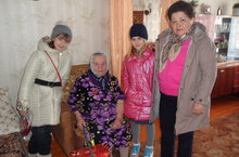 Какая это приятная миссия - поздравлять тружеников тыла, вдов Великой Отечественной войны с 70-летием Победы! Нас ждали в каждом доме, ветераны принарядились, приехали дети, внуки, пришли поздравить соседи. Были слёзы радости, горечь потерь по тем, кто не вернулся домой с войны, ушёл из жизни, много воспоминаний о трудностях военного времени. Пожилые люди благодарили, старались держаться прямо, забыв о возрасте и своих болезнях. Хочется сказать огромное спасибо родственникам, которые создают хорошие условия проживания ветеранов, не бросают их, заботятся. С праздником!