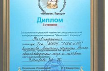 7 февраля 2015 года в гимназии № 90 Советского района г. Казани прошла НПК «Интеллект. Карьера-2015», где со своими исследовательскими работами выступали ученики нашей школы. Киселькова Анастасия и Шумская Алина из 7к класса с работой «Тихий подвиг во имя Победы» заняли 1 место в секции по истории и обществознанию, а Селестенюк Елена из 10а класса с работой «Этимология улиц посёлка Дербышки» заняла 3 место!. Молодцы! Так держать!