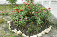 Ещё зимой мы поставили себе цель-около школы должно быть много цветов. Наше решение совпало с замечательной акцией по городу Казани « Цветущая Казань». Все предприятия, магазины, организации дружно взялись украшать свои территории. Учащиеся и родители нашей школы весной посадили рассаду цветов. Цветы росли на подоконниках классов, в теплицах у учителей. И вот результат! Палисадники зацвели различными цветами. Самыми популярными стали циннии и бархотки. Летний зной пытался уничтожить наши насаждения. Но, благодаря стараниям наших сотрудников, цветы выжили и радуют сейчас всех прохожих. Есть уже идеи на следующий год. Ждём и ваших предложений по благоустройству территории школы.