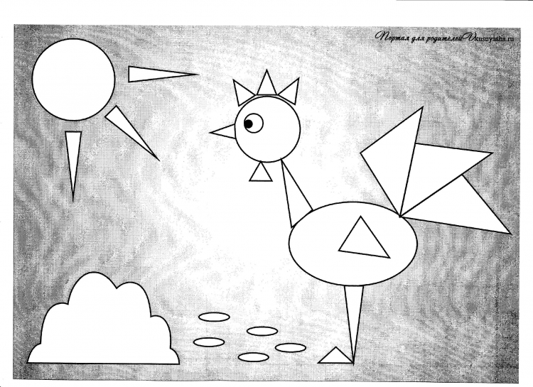 Рисунки фигурами: Остров, Петушок, Поросенок