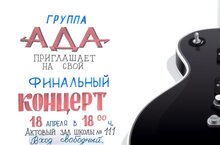 Школьная группа "АДА" приглашет родителей, учителей и учащихся на свой заключительный концерт 18 апреля в 18:00. Вход свободный.