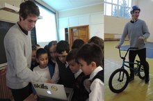 Выпускник школы №111 Ризаев Ирек, медалист первого официального чемпионата мира по BMX Freestyle, вошедший в 10-ку сильнейших, показал мастер класс для учащихся, посещающих кружок "Безопасное колесо" под руководством Баранова В.В.