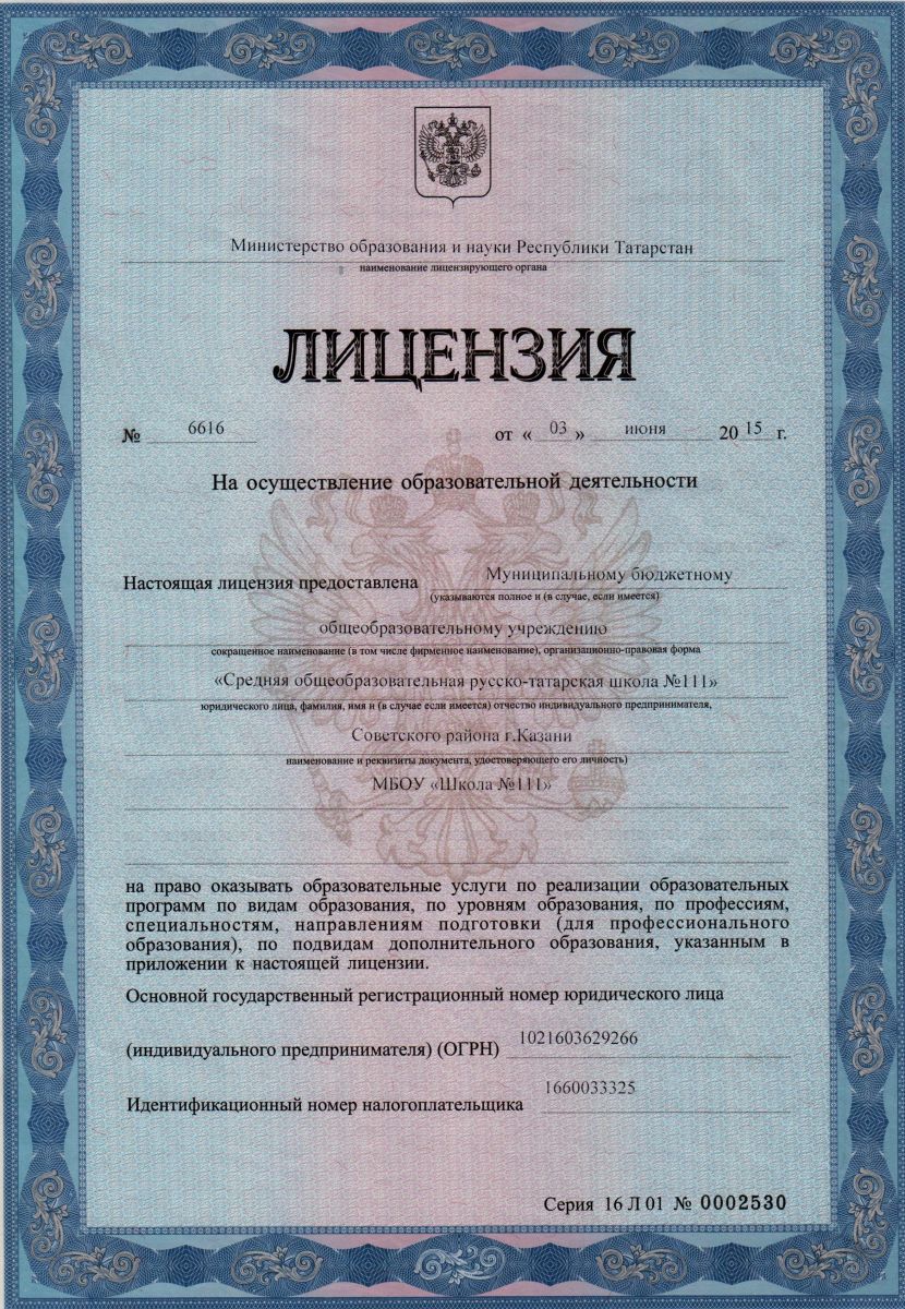 МБОУ «Средняя общеобразовательная русско-татарская школа №111» Советского района г. Казани