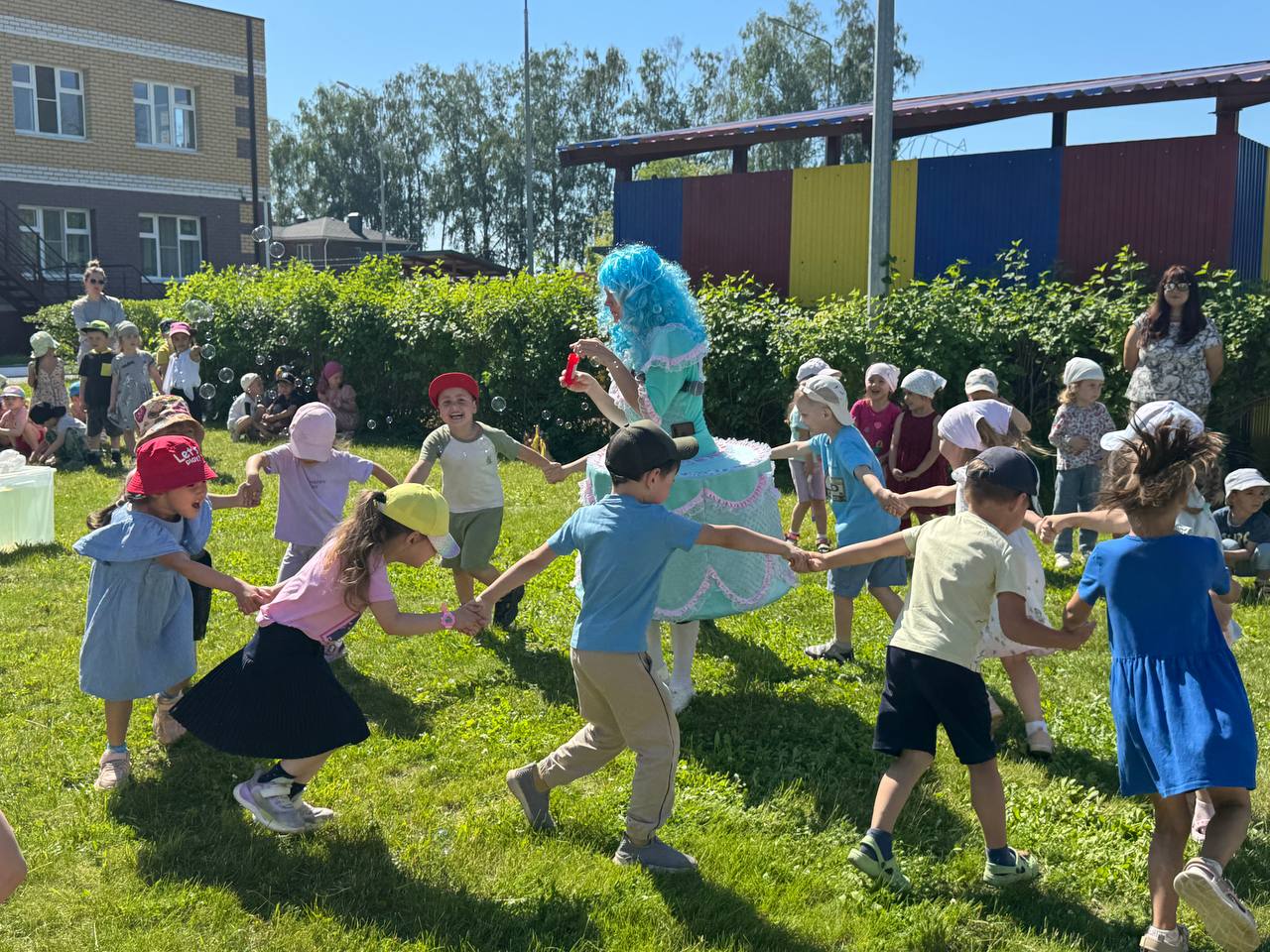 Для ребят был создан настоящий веселый праздник! Гости праздника - Пироженка и Пломбир, провели весёлые игры, эстафеты, вместе пели песни и задорно танцевали. Нам было приятно видеть радостные детские лица и слышать весёлый детский смех! В этот день каждый ребёнок унёс с праздника частичку тепла и заботы наших замечательных педагогов!