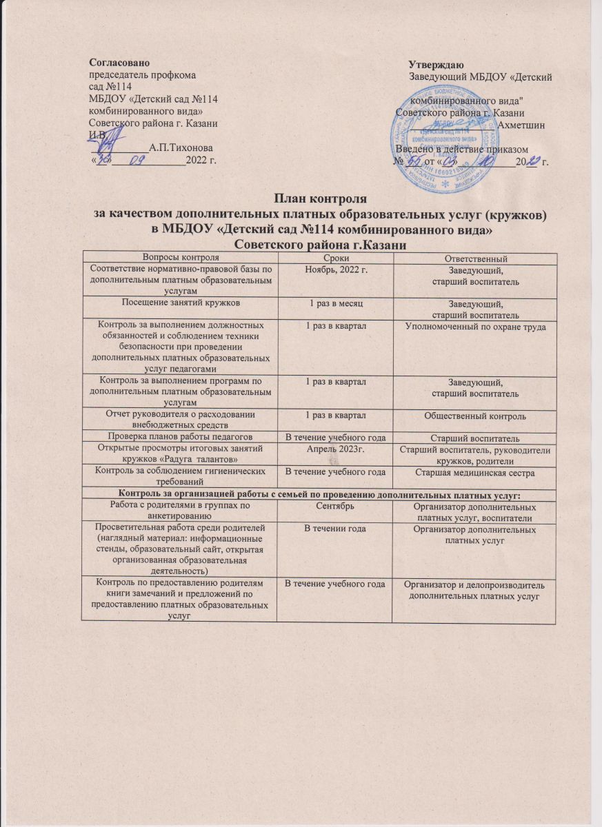 Прейскурант цен по доп.услугам на 2022-2023 уч.год