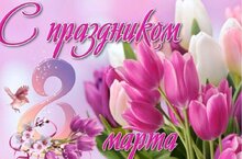 От чистого сердца поздравляем Вас с Международным женским днем - 8 Марта! Желаем Вам восхищать всех своей красотой, радовать близких улыбками, наполнять свою жизнь грандиозными планами и великими успехами, оставаться отражением лучезарной доброты и милосердия, в любом деле проявлять великолепие и свой чудесный талант. Этот красивый праздник в начале весны приходит к нам, когда всё оживает, расцветает и распускается. Пусть в вашей жизни будет вечная весна, пусть ярко светит солнце, пусть поют птицы, пусть дни будут светлыми и безоблачными.