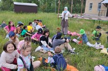 Сегодня день в нашем пришкольном летнем лагере «Ялкын» прошел очень насыщенно: ребята побывали в библиотеке, который находится в ДК Нагорный. На улице дети расстелили коврики и слушали чтение книги "Дядя Федор, пес и кот". Все мы с детства знакомы с серией замечательных мультфильмов «Каникулы в Простоквашино», «Трое из Простоквашино» и т.п. Все мы очень любим замечательных героев Дядю Федора, кота Матроскина, собаку Шарика, почтальона Печкина, Галчонка. И все эти персонажи как раз из этой замечательной книги, которую написал Эдуард Успенский.