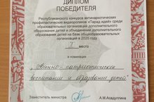 13 января 2021 года мы стали Победителями республиканского конкурса антинаркотических профилактических видеороликов «Парад идей» в номинации «Военно-патриотическое воспитание и образование детей» среди образовательных организаций дополнительного образования детей и объединений дополнительного образования на базе общеобразовательных организаций.