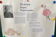 Боевой листок, посвященный Герою Советского Союза Борису Кирилловичу Кузнецову, был выпущен учениками и родителями 2 а класса. Борис Кириллович родился в 1925 году в Казани, здесь окончил 6 классов и ремесленное училище и с самых первых дней войны рвался на передовую. В армию его приняли в ноябре 1942-го, ему было 16 лет, по возрасту рано, зато уже тогда Борис Кузнецов был парнем крепким, почти под центнер, вспоминает он сам. ... У Бориса Кузнецова — 7 боевых прыжков с парашютом, 9 раз он был в тылу врага, добывая ценные сведения, дважды был ранен, в одной битве вынес с поля боя боевое знамя Чести. Борис Кузнецов получил звание Героя Советского Союза будучи самым молодым бойцом в действующей на тот момент армии, а ведь изначально будущего героя даже не хотели брать на фронт. Дети внимательно слушали рассказ о Герое, и конечно, все как один хотели быть похожи на него…